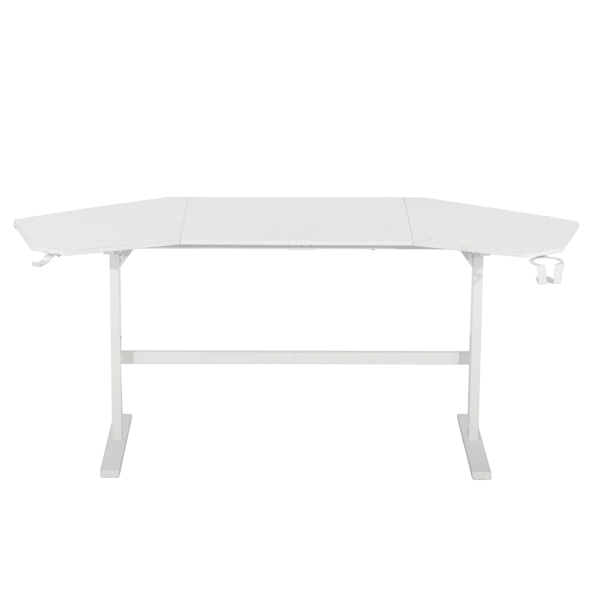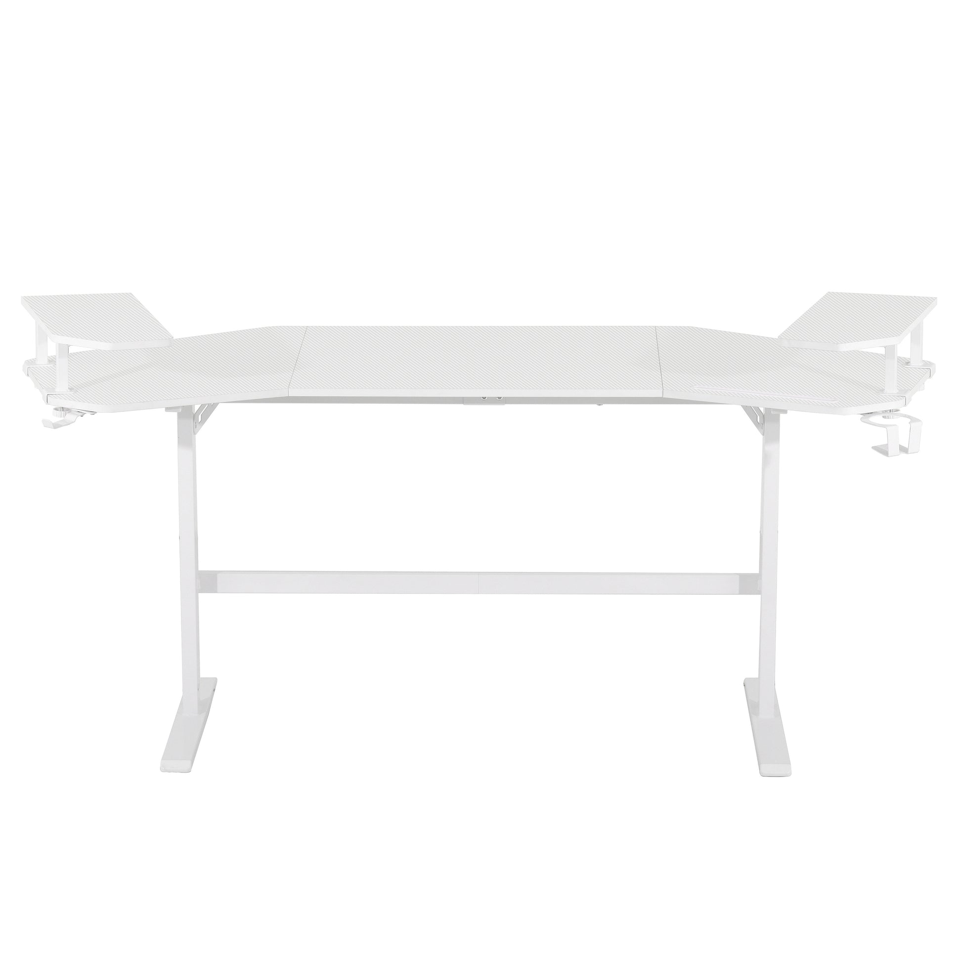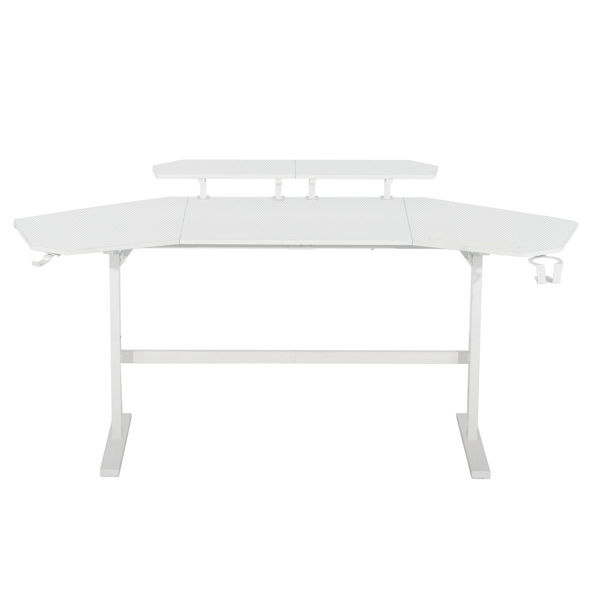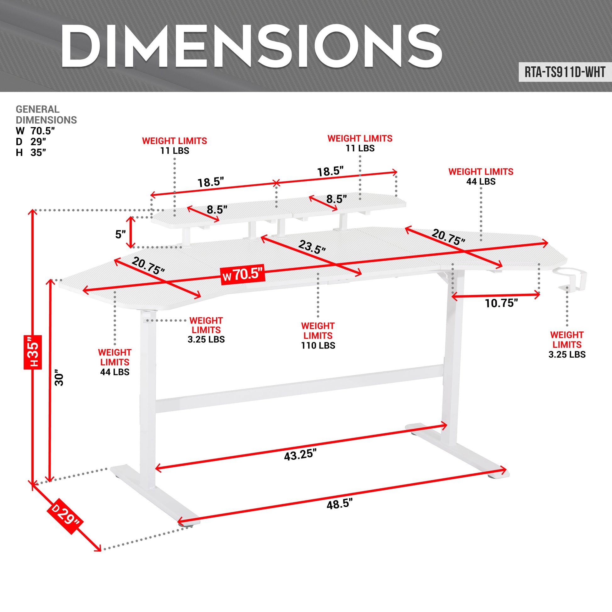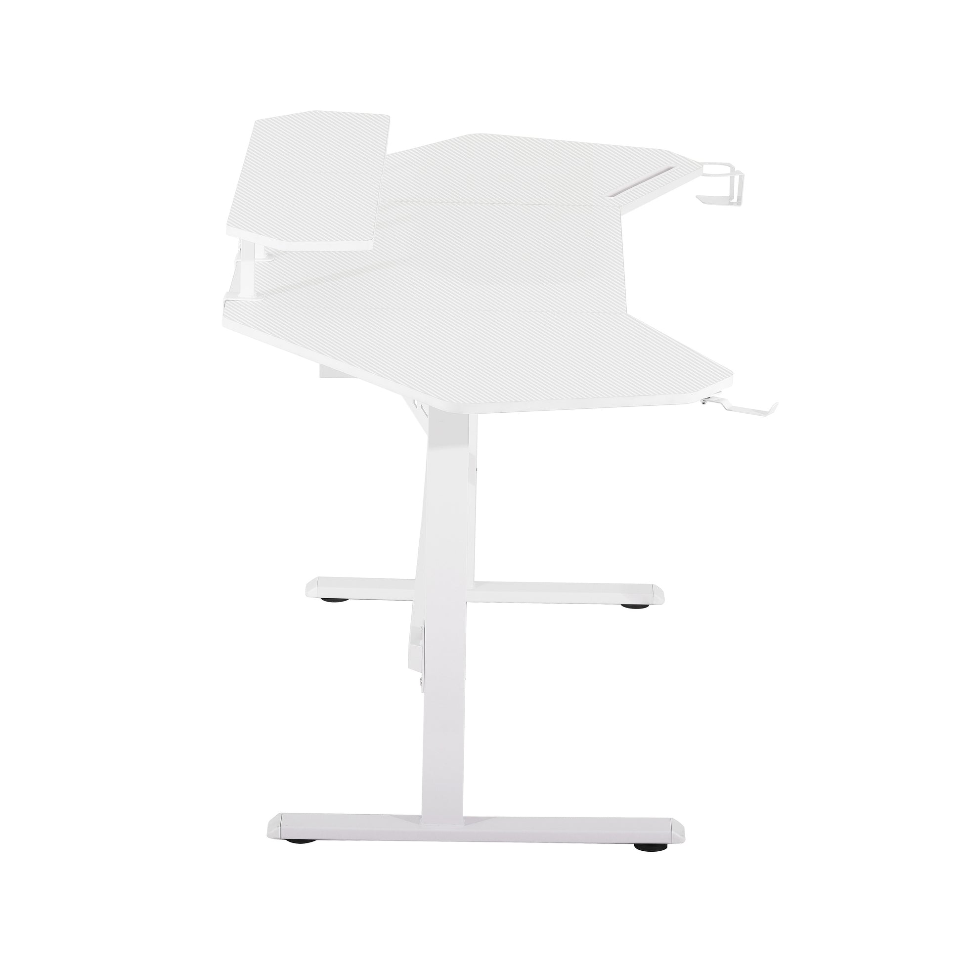 Experience unbeatable gaming sessions with the Techni Sport Defender Gaming Desk, designed for the serious gamer. Built with MDF in a stylish carbon fiber-like surface in black or white this desk offers a modern look that complements any gaming setup. Its sturdy steel frame is scratch-resistant, ensuring durability and a sleek appearance for years. With two adjustable and removable monitor shelves, it supports dual-monitor setups, enhancing your gaming experience. The desk also includes a retractable accessory holder and cup holder, and a tabletop built-in tablet or phone stand keeping your gaming essentials organized and within easy reach.